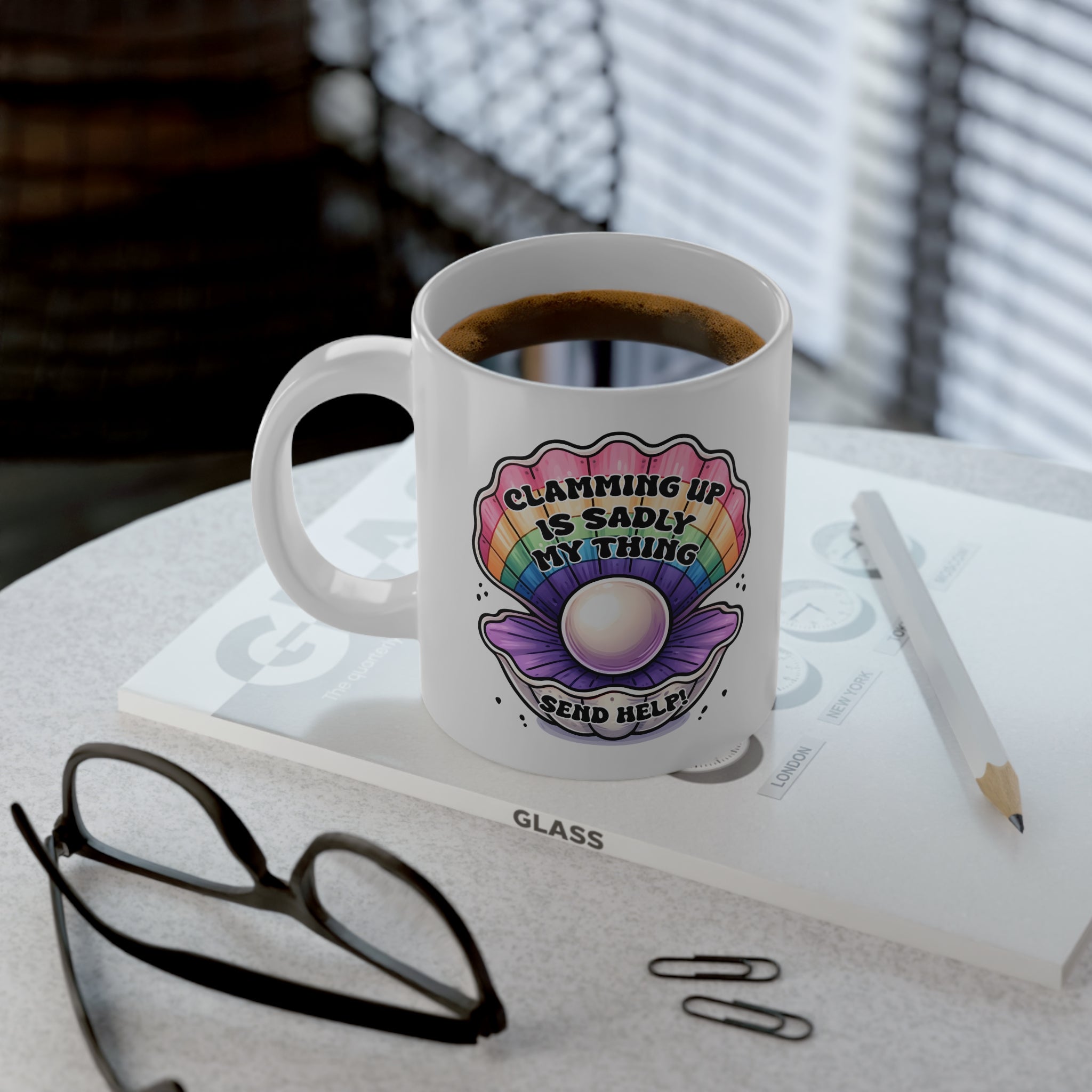 20oz Jumbo Mug — Rainbow Pearl Shell "Clamming Up Is My Self-Care" Coffee Cup