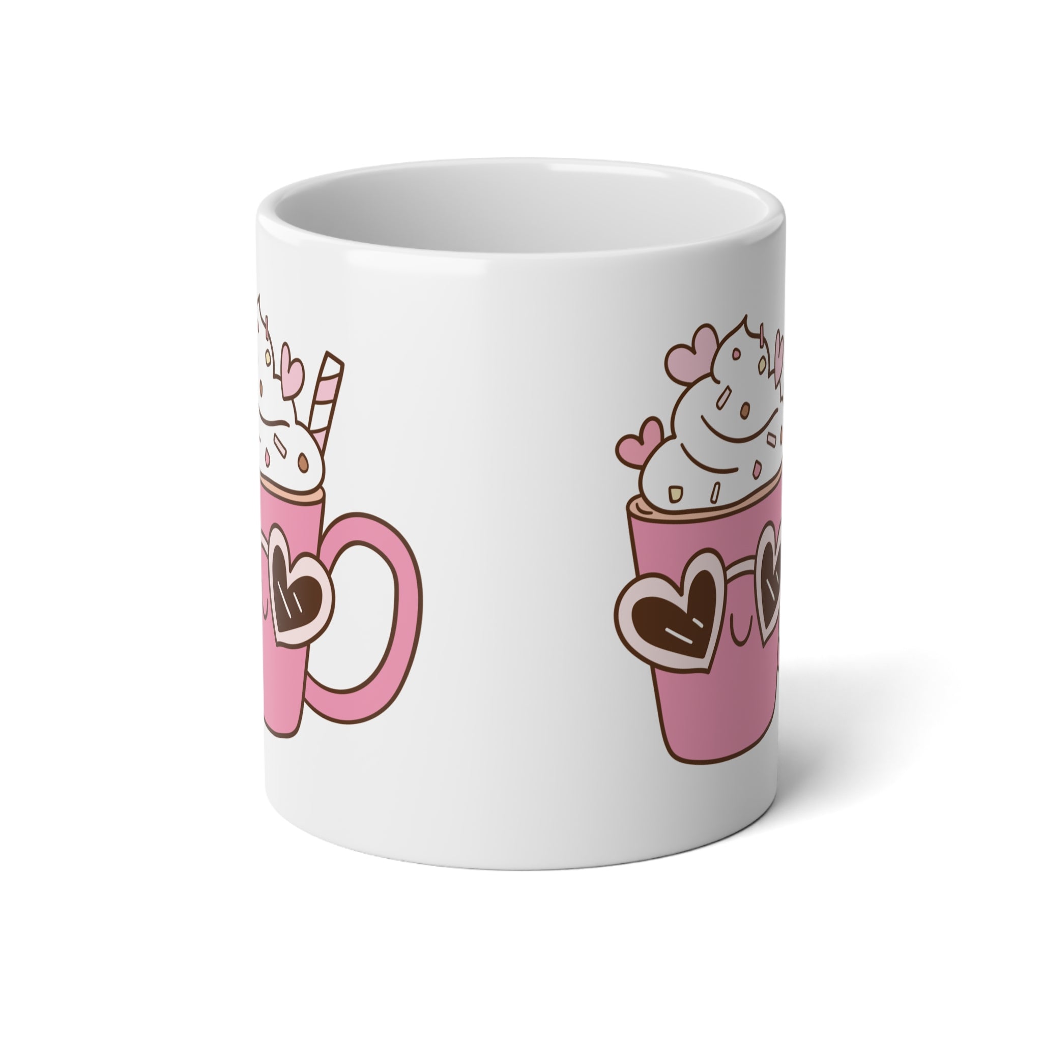 20oz Cute Pink Hot Cocoa Mug — Kawaii Heart Sunglasses Coffee Cup
