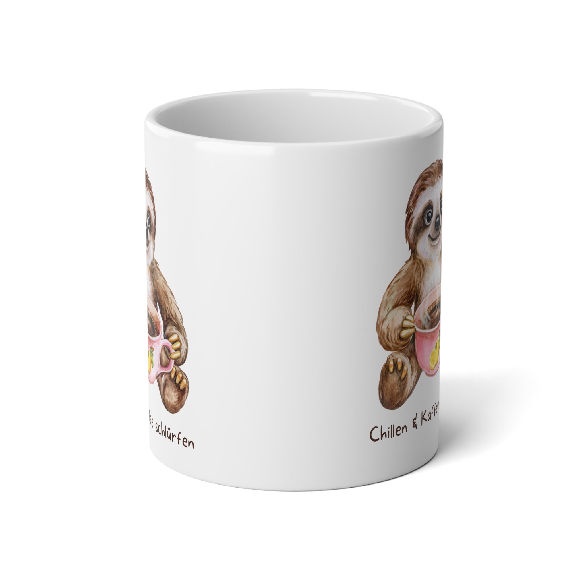 20oz Jumbo Mug — Cute Sloth Holding Coffee Cup, “Chillen & Kaffeefen” Cozy Animal Coffee Mug
